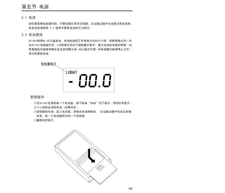 電源: 9V,6 F22Y 錳電池; 壽命: 連續(xù)工作大約50小時,間斷使用約一年