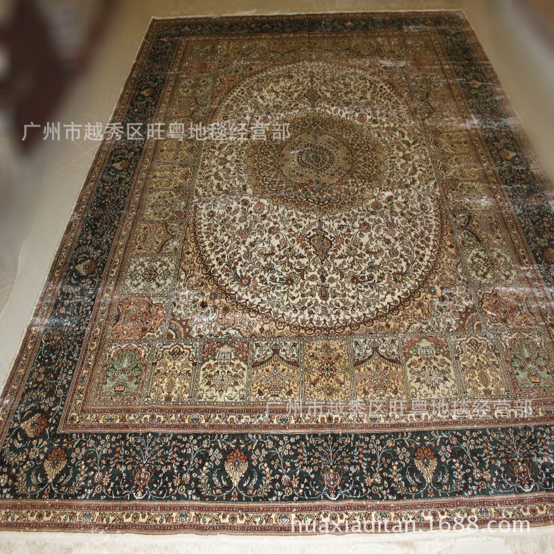 我廠專業(yè)生產(chǎn)手工編織的全真絲地(掛)毯,即波斯地(掛)毯。