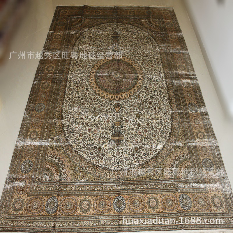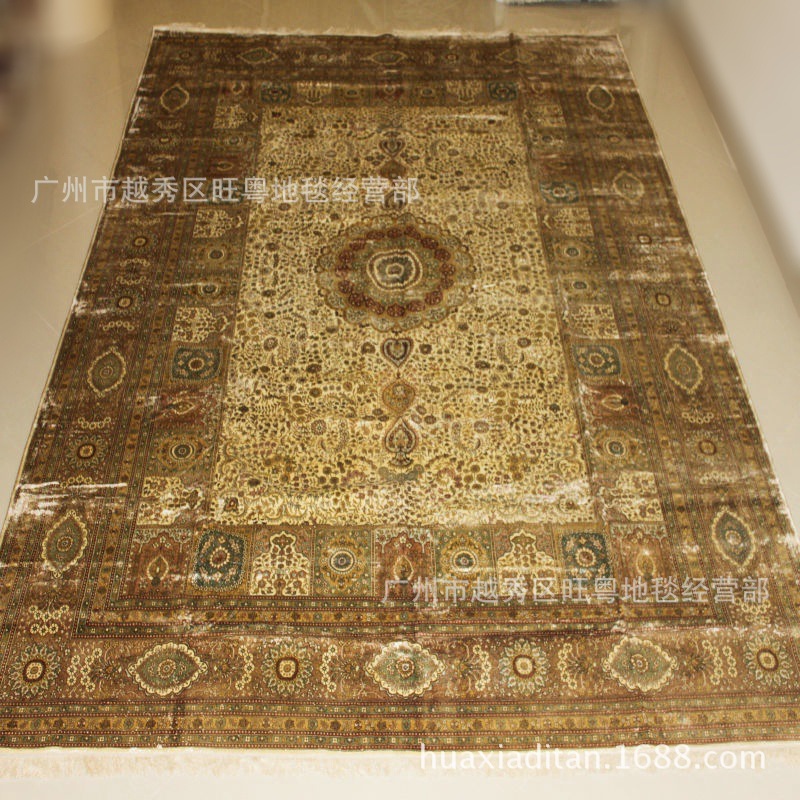 我廠專業(yè)生產(chǎn)手工編織的全真絲地(掛)毯,即波斯地(掛)毯。