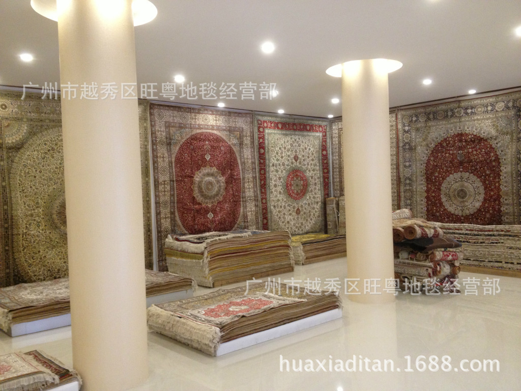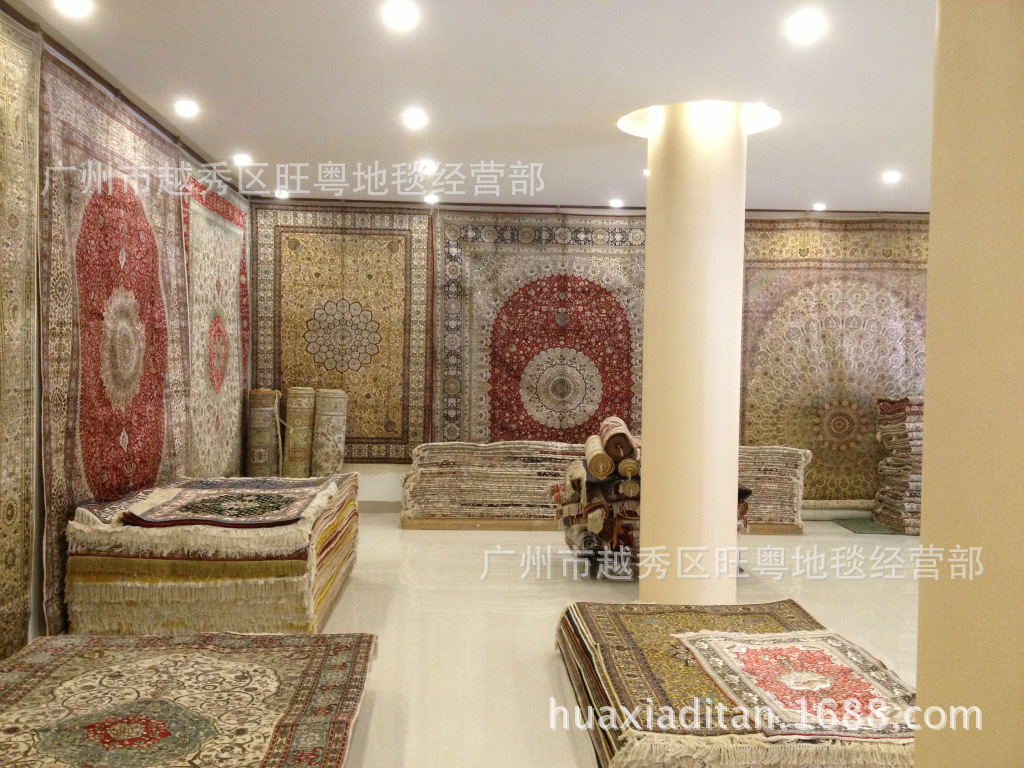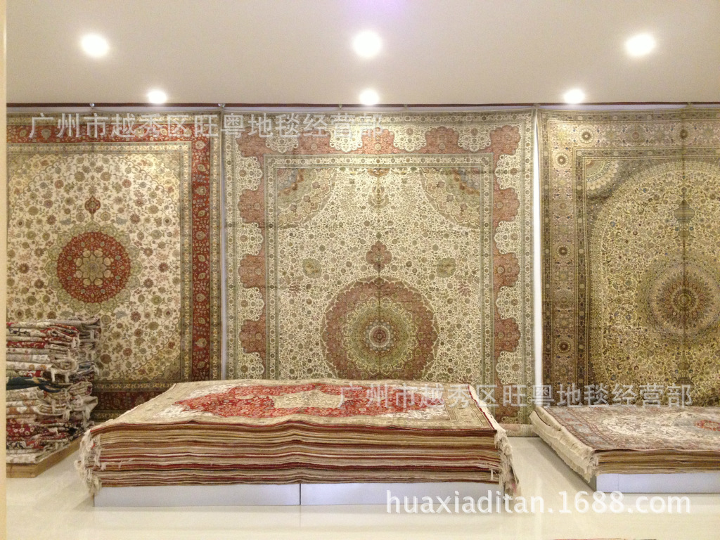 我廠專業(yè)生產(chǎn)手工編織的全真絲地(掛)毯,即波斯地(掛)毯。