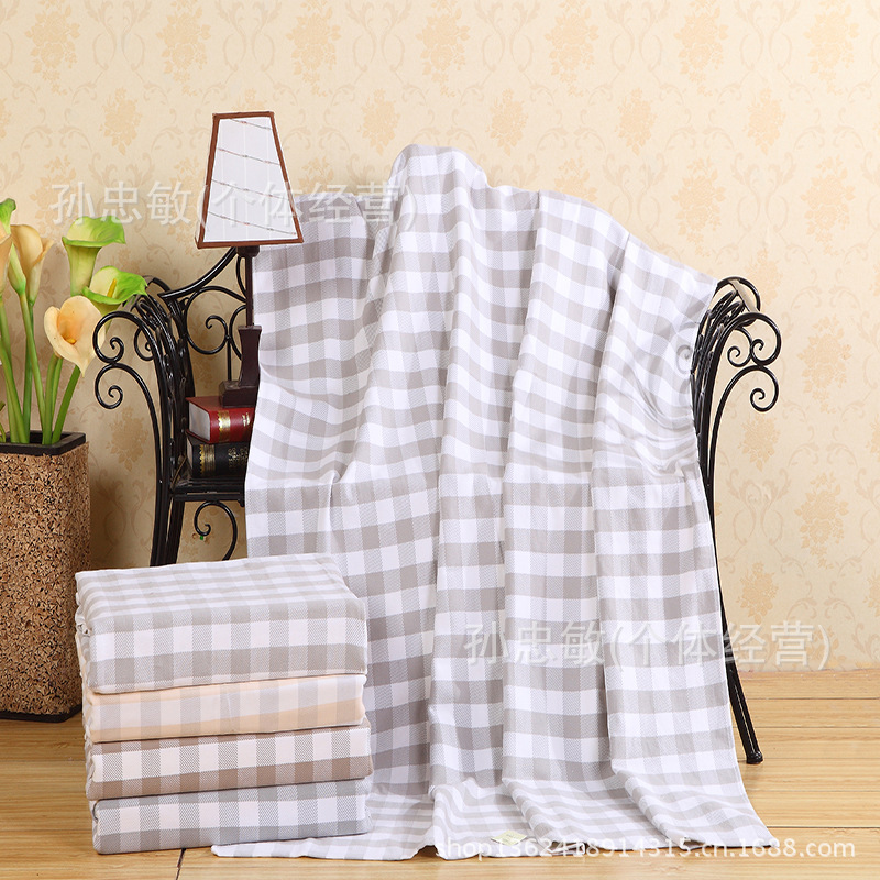 格子紗布毛巾被: