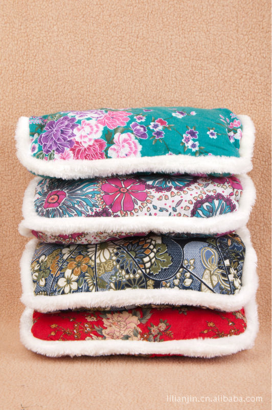 外層是棉布,中間夾云絲棉,里層是加厚羊羔絨布,十分保暖