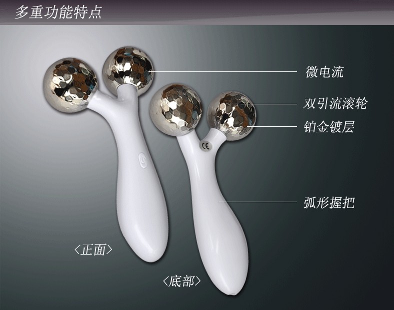 【產(chǎn)品特點】:鉆石切割面滾輪。專為嬌嫩肌膚設(shè)計,多角度確保滾輪與肌膚的接觸面積,效果更理想。差額電流軸承。手柄手感舒適,容易拿握。輕輕用力就可以快速滾動按[mo]。在短時間可以體驗美容美顏按[mo]***體驗。