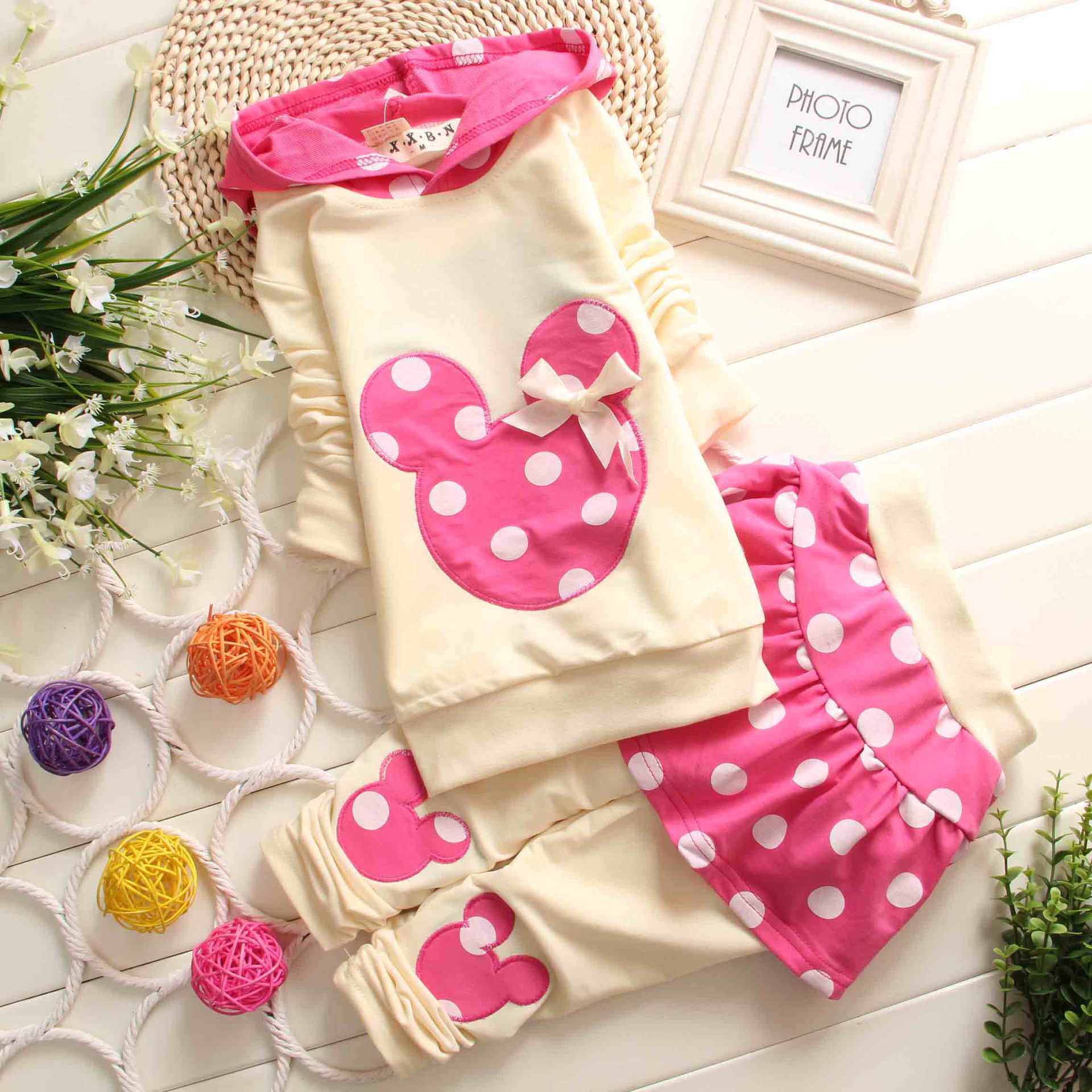 2015春款童裝 韓版女童純棉套裝 可愛圓點卡通裙褲套裝*** 直批