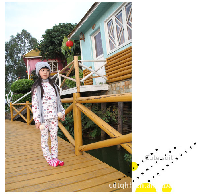 現(xiàn)貨兒童***卡通印花內(nèi)衣套裝(白色印花 絨里加厚)