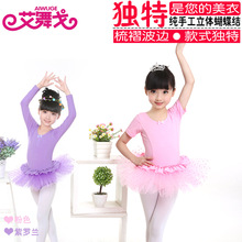兒童舞蹈服裝女童棉連體裙短袖春夏練功服粉連體服連衣裙黃考級服25.00