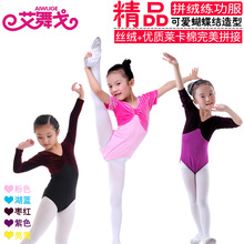 品牌絲絨兒童舞蹈服女童春夏長袖棉連體開襠練功服加厚考級形體服24.00