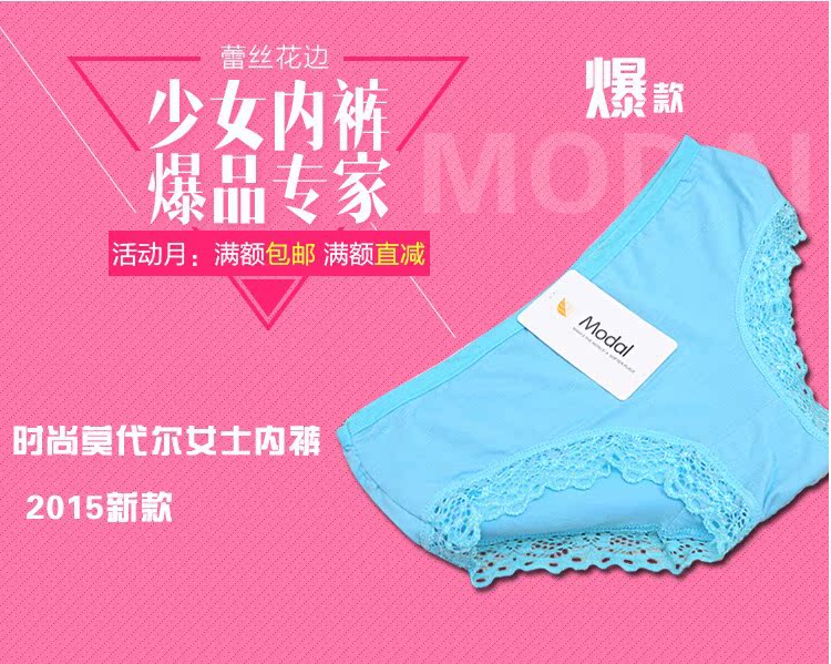 新款超大碼內褲柔軟莫代爾女士內褲性感蕾絲女式三角內褲***促銷