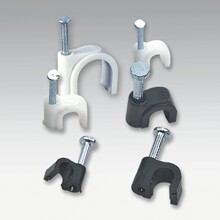 鋼釘線卡是一款塑料制品。采用PE料注射成型,彈性大,耐沖擊,絕不破裂。 產品系列為插釘式,鋼釘直接附在線卡上,可大量節(jié)省式時,降低施工成本。 使用方法:將電線置于卡內,用鐵錘將鋼釘釘上墻壁即可將電線固定。 用途:一般室內配線固定電線用