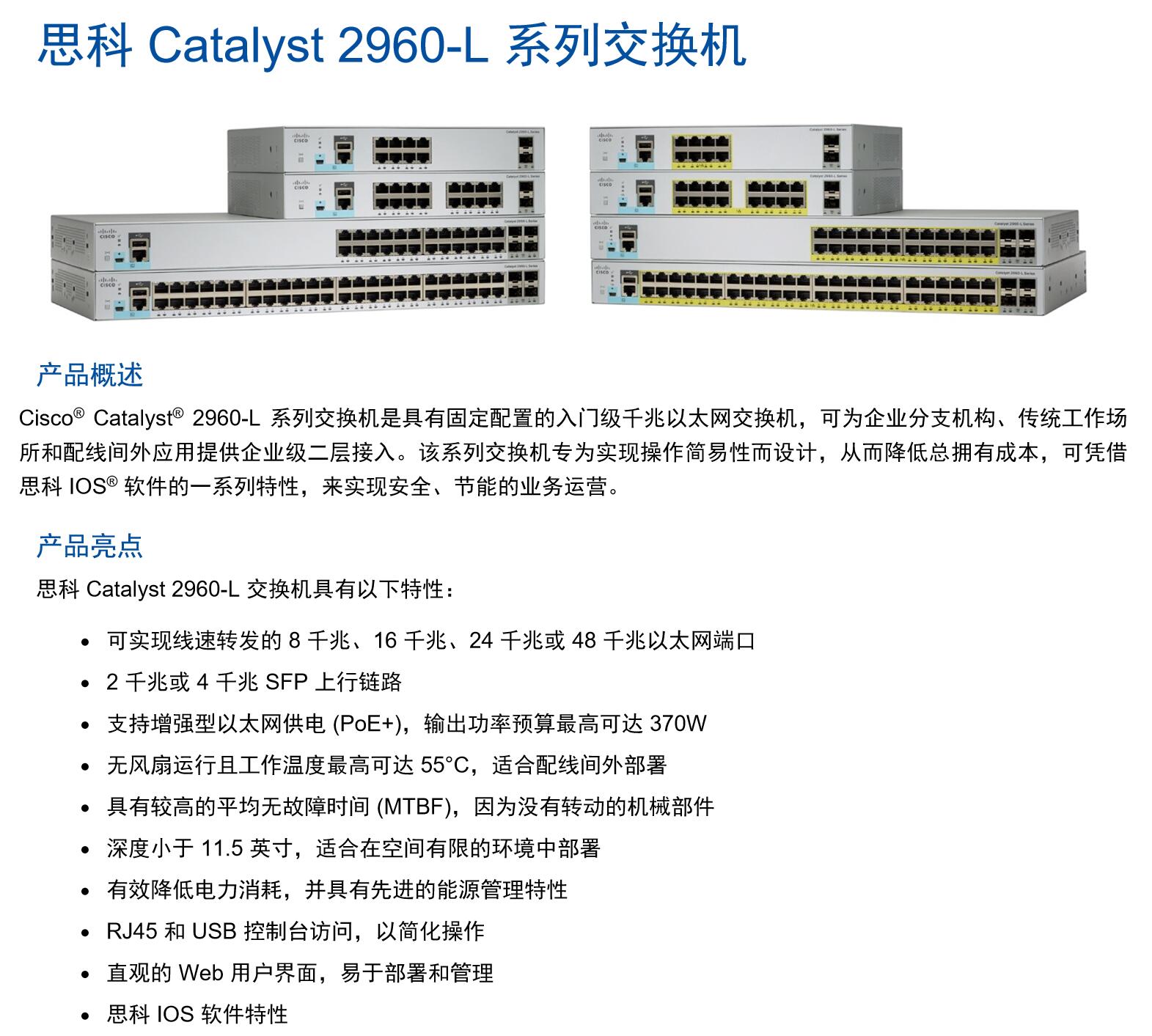 WS-C2960L-8TS-LL 8個(gè)千兆電口 2個(gè)SFP