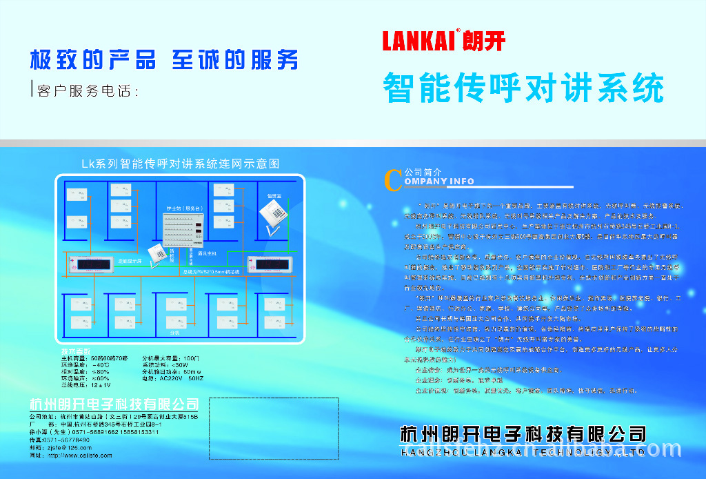 “朗開”系列醫(yī)用傳呼系統(tǒng)在2003年通過江蘇省電子信息產(chǎn)業(yè)廳科技成果鑒定,產(chǎn)品遠銷全國20多個省市各大醫(yī)院,并作為援外項目出口到非洲。展望未來,著眼現(xiàn)實,我廠將以更加務(wù)實的精神,致力于醫(yī)用傳呼系統(tǒng)的***化研制生產(chǎn),向更高的層次邁進。 熱忱歡迎各界新老客戶光臨惠顧和洽談。