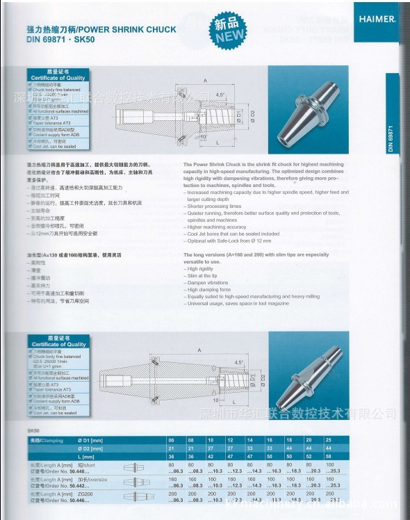 供應德國產(chǎn)HAIMER翰默DIN 69871.SK50***熱縮刀柄/POWER SHRINK CHUCK