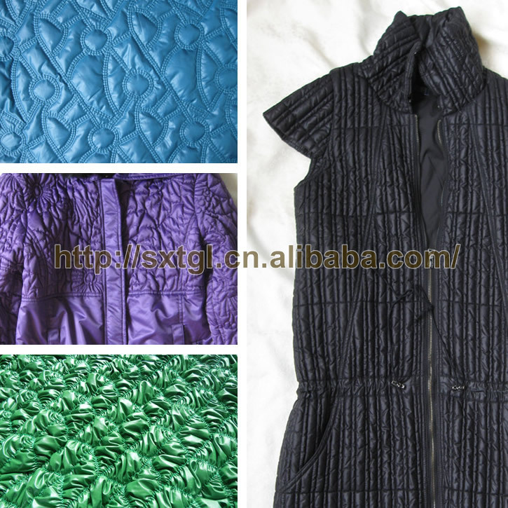 服裝面料:廣泛應(yīng)用于***秋冬茄克、棉衣、皮衣等。添加不同厚度的絲棉運(yùn)用不同的花型與起縐等特殊工藝,達(dá)到保暖實(shí)用且時(shí)尚非凡效果。