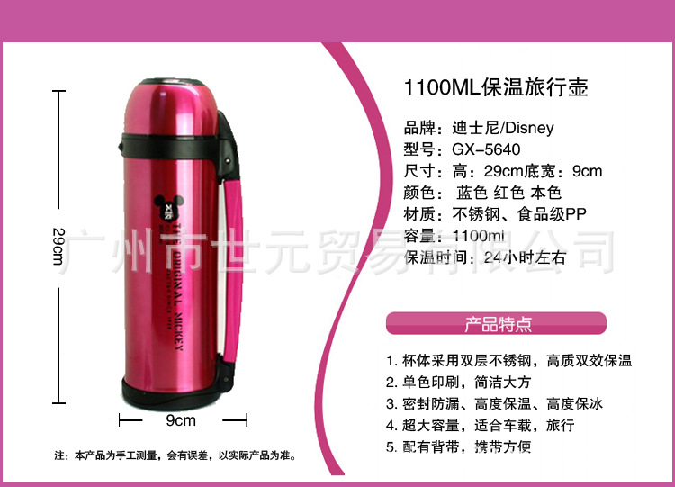 【品名】:迪士尼大容量真空不銹鋼保溫壺