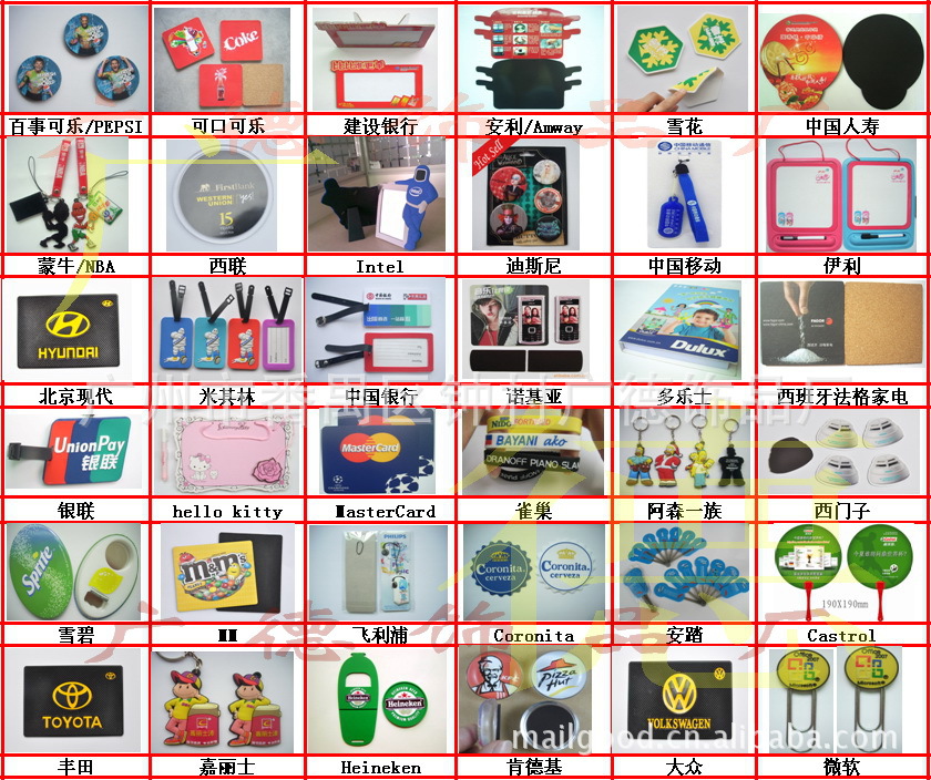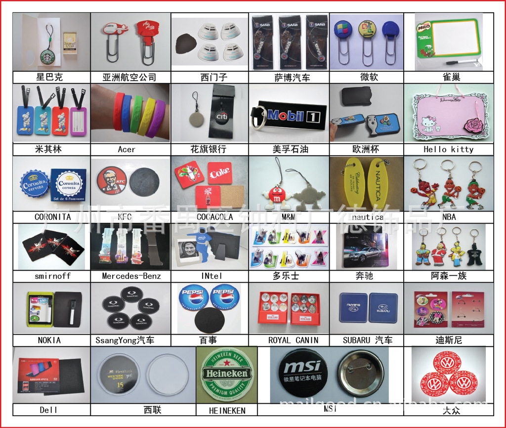 主要制造產(chǎn)品:PVC鑰匙扣、鼠標墊、磁性寫字板、冰箱貼、各種杯墊等。。。