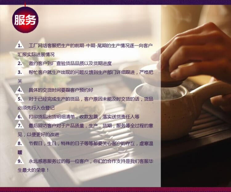***的服務(wù)、一貫性的態(tài)度:公司擁有***的OEM團(tuán)隊(duì),從產(chǎn)品結(jié)構(gòu)設(shè)計(jì)、包裝設(shè)計(jì)、品牌構(gòu)思都能為你提供***的建議。由于長(zhǎng)期的合作,公司擁有一大批協(xié)力供應(yīng)商,為你的品牌提供諸多便利。對(duì)待客戶公司執(zhí)行一貫性的態(tài)度,從上至下無(wú)論總經(jīng)理還是普通員工,都重視并維護(hù)客戶的權(quán)益。公司始終秉承“誠(chéng)實(shí)立身、信譽(yù)興業(yè)”的宗旨。以質(zhì)量求生存,用誠(chéng)信鑄品牌,用責(zé)任維護(hù)品牌。“貼近客戶、用心聆聽”是我們的服務(wù)之本;“做生意、先做人”是我們的理念;“建立***合作關(guān)系,共創(chuàng)雙贏美好未來(lái)”是我們的目標(biāo)。