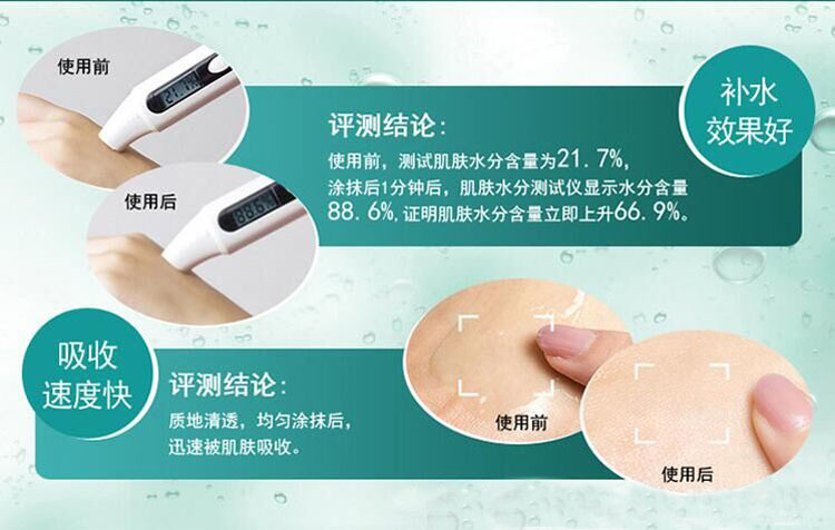 1. 深保濕:5層深保濕,層層沁透 一滴精華,蘊(yùn)含多少深保濕科技? 韓琪本廠***的三重透明質(zhì)酸鎖水科技: 高分子透明質(zhì)酸,精純透明質(zhì)酸、微囊透明質(zhì)酸,將新鮮水分源源輸送到肌膚不同層面,并鎖緊水分,強(qiáng)化儲(chǔ)水! 水質(zhì)***純凈,蘊(yùn)含礦物的傳奇孚日山SPA礦泉水。源源深透,層層沁透,***肌膚***保濕屏障! 肌膚時(shí)刻水嫩飽滿,一滴精華就能做到!