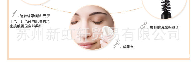 1、筆觸輕柔細膩,易于上色,讓色彩與肌膚的親密接觸更顯自然柔和。