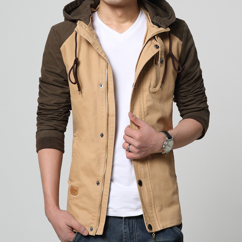 高品質(zhì)夾克外套2015春裝新品男夾克拼色連帽休閑男式夾克男薄外套R(shí)MB¥105