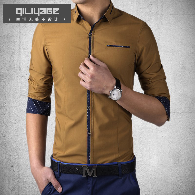 男式襯衫2015男士春裝襯衫加大大碼男士襯衣修身男襯衫防縮水處理RMB¥40