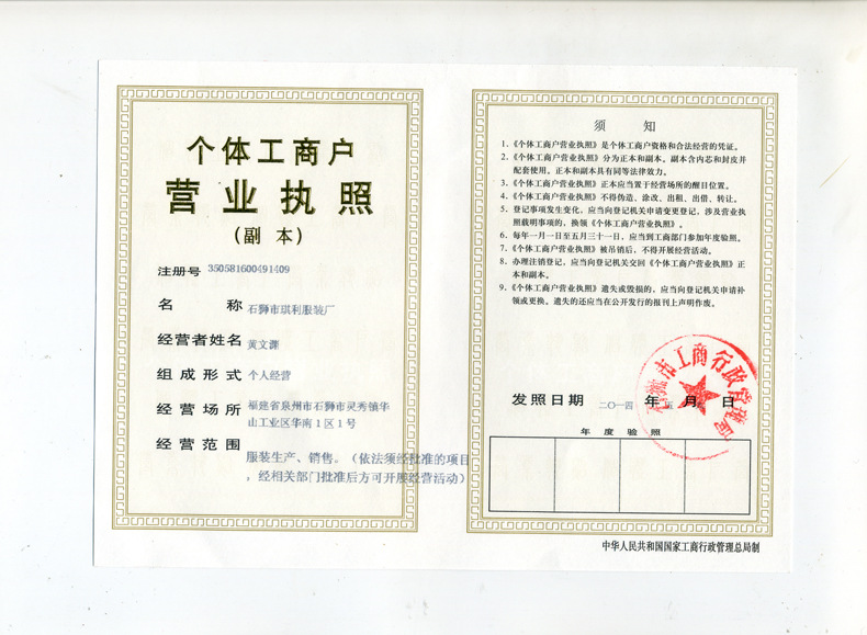 工廠執(zhí)照:
