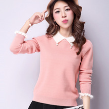 2015秋冬新款***女裝韓版拼接貂絨娃娃領(lǐng)保暖針織毛衣打底