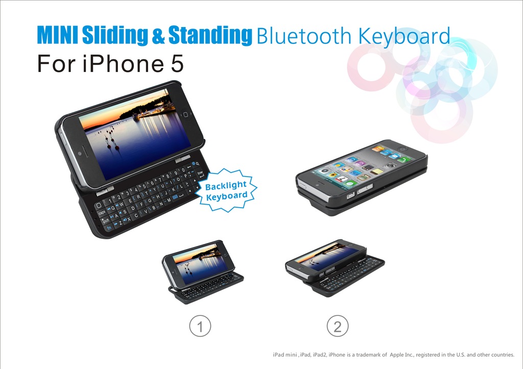 廠家直銷 iphone5側(cè)滑藍牙鍵盤帶支架保護殼帶LED背光調(diào)整高度