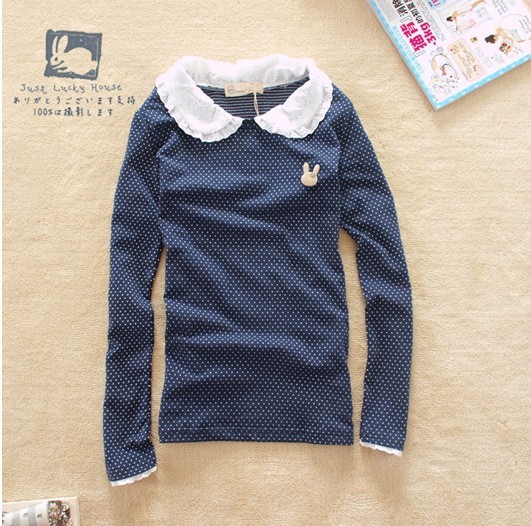 1.寶貝名稱:秋季***打底單品 海軍風(fēng)翻領(lǐng)圓點(diǎn)點(diǎn)棉長(zhǎng)袖Tee藍(lán)色