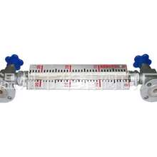 根據(jù)浮力原理和磁性耦合作用研制而成。當(dāng)被測容器中的液位升降時,液位計本體管中的磁性浮子也隨之升降,浮子內(nèi)的磁鋼通過磁耦合傳遞到磁翻柱指示器,驅(qū)動紅、白翻柱翻轉(zhuǎn),當(dāng)液位上升時翻柱由白色轉(zhuǎn)變?yōu)榧t色,當(dāng)液位下降時翻柱由紅色轉(zhuǎn)變?yōu)榘咨?,指示器的紅白交界處為容器內(nèi)部液位的實(shí)際高度,從而實(shí)現(xiàn)液位清晰的指示。