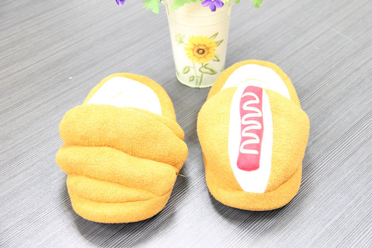 梵創(chuàng)工藝 秋冬保暖面包拖鞋創(chuàng)意熱狗 家居室內(nèi)棉拖鞋 ***
