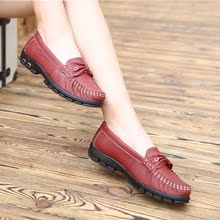 廠家***批發(fā)新款頭層皮平跟女單鞋平底媽媽鞋舒適休閑淺口輕便鞋