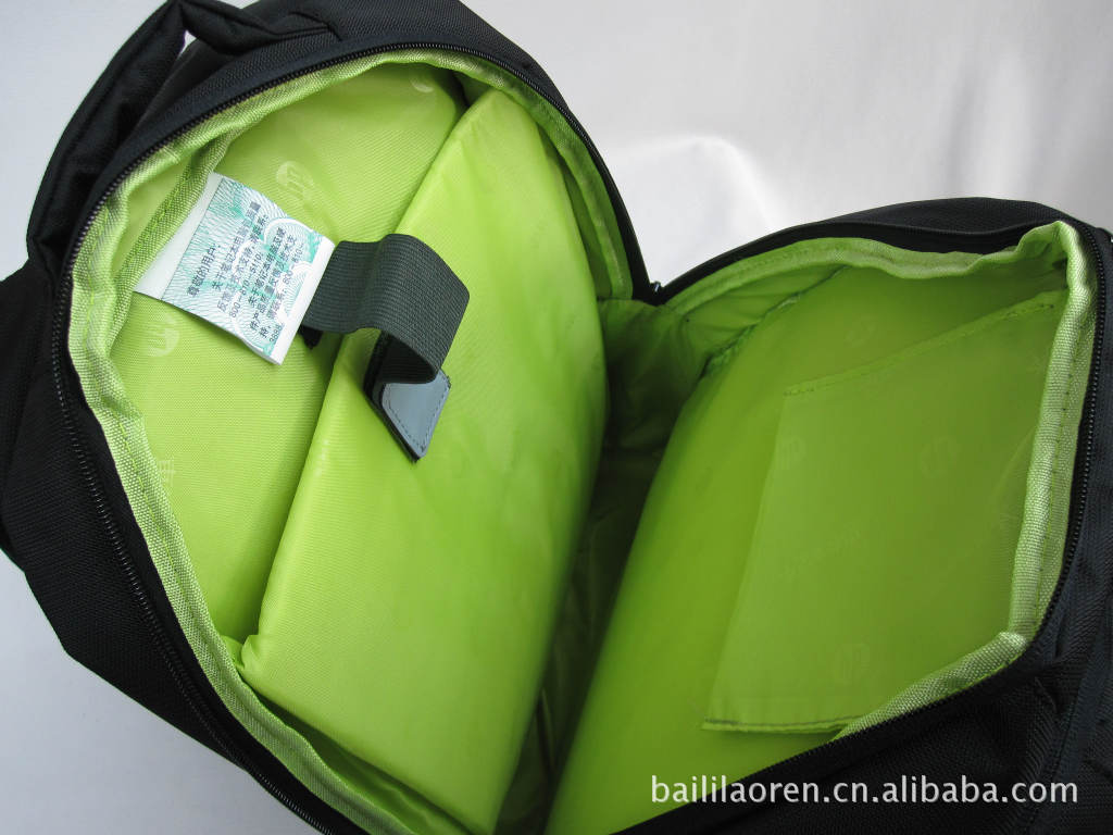 【結(jié)構(gòu)】:包包兩個大的主袋,拉鏈封口。內(nèi)置電腦專用隔層,有效保護筆記本,防震、防磨、防劃。一個主袋,可放衣服、雜志等物品。一個雜物袋,可放雜志、錢包、鼠標(biāo)、電源、電池等。
