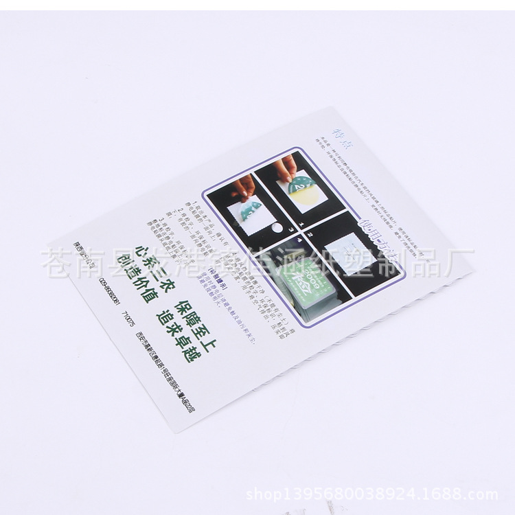蒼南縣龍港鎮(zhèn)佳涵紙塑制品廠是靜電貼、停車提示卡、PP文件袋、廣告扇、無(wú)紡布袋、PP、PVC、便簽、無(wú)紡布等產(chǎn)品***生產(chǎn)加工的公司,擁有完整、科學(xué)的質(zhì)量管理體系。蒼南縣龍港鎮(zhèn)佳涵紙塑制品廠的誠(chéng)信、實(shí)力和產(chǎn)品質(zhì)量獲得業(yè)界的認(rèn)可。歡迎各界朋友蒞臨參觀、指導(dǎo)和業(yè)務(wù)洽談。
