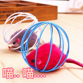 寵物玩具 現貨批發(fā)貓用品 貓玩具 籠中皮毛老鼠 直徑6.5CM 貓咪¥2.40