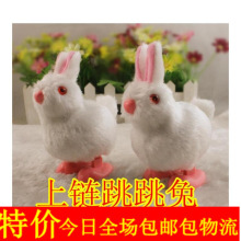 上鏈跳跳小兔子 發(fā)條毛絨玩具 地?cái)偤秘浽?***