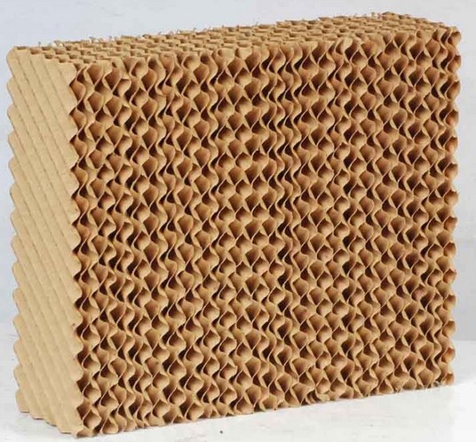 濕簾,也稱水簾,呈蜂窩結(jié)構(gòu),是由原紙加工生產(chǎn)而成。其生產(chǎn)流程為上漿、烘干、壓制瓦楞、定型、上膠、固化、切片、修磨、去味等。