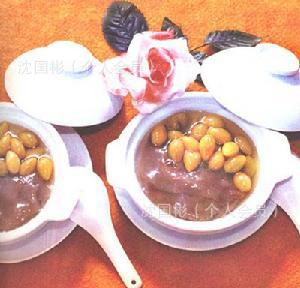 銀杏仁(去殼后用沸水燙去內(nèi)種皮)6-10粒,冰糖少量,粳米2兩,水適量,同時放入鍋中,文火煮熟即成。以粳米成糊糜狀即可。