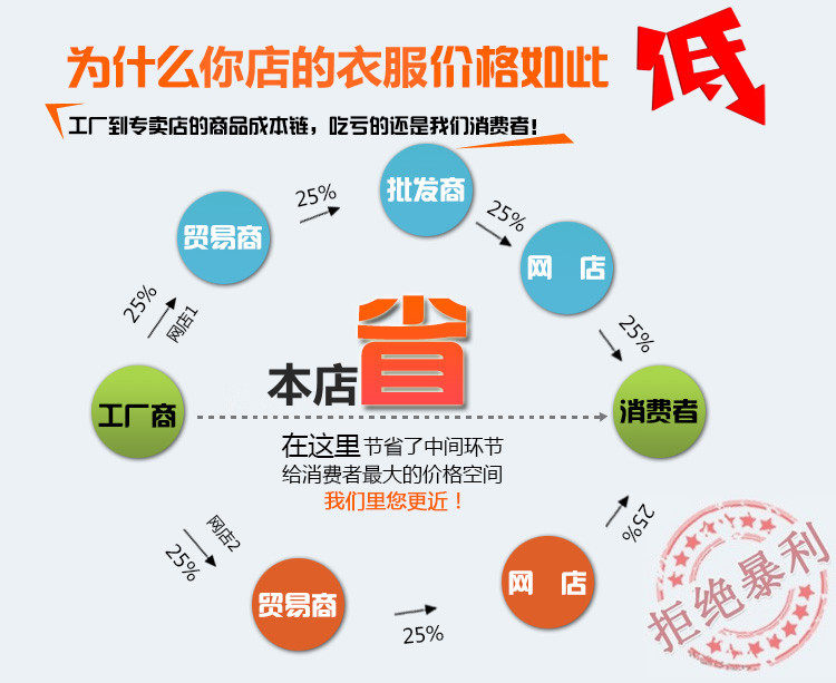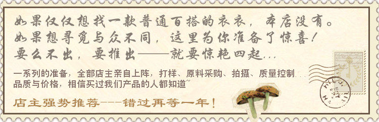 聯(lián)系客服請采用旺旺方式聯(lián)系,認(rèn) 準(zhǔn)同一個客 服咨詢,可以得到更***服務(wù)!由于咨詢量很大,旺旺通常處于爆掉狀態(tài),如果長時間 未得到回復(fù),可以根據(jù)描述說明選擇自助購物,所需要的顏色/尺碼/快遞信息 請直接填寫在備注說 明里。有特殊需求可以留言,我們會一一處理氣味問題衣服直接從工廠發(fā)出,生 產(chǎn)出來馬上 包裝,難免有些氣味,這屬于正?,F(xiàn)象。建議敞放幾天,氣味自然會消失。如對氣味較 敏感,請慎重考慮后購買。氣味問題不作為退換貨依據(jù)尺寸問題為方便親們選購,我們提 供了尺碼對 照表、測量方法。然而因每個人的體型不同,個體感受也有差異,對于尺碼我們只提供 建議,具體尺碼選擇請根據(jù)個人體形的實(shí)際情況來選購。如因尺碼不合適退款 ,需要由買家自行承 擔(dān)來回郵費(fèi)色差問題我店商品照片均為***攝 影師拍攝, 盡量與實(shí)物保持一致,但由于拍攝技術(shù)/環(huán)境光線/顯示器色差等原因,可能導(dǎo)致圖片與 實(shí)物有略有色差,請終請以實(shí)物的顏色為準(zhǔn)關(guān)于發(fā)貨關(guān)于發(fā)貨,如無特殊原因 ,已支付訂 單我們會在24小時內(nèi)發(fā)出(為方便顧客能夠順利收到寶貝,請?jiān)谂南赂犊詈罅粞蕴巶渥?所需發(fā)的快遞公司),另偏遠(yuǎn)地區(qū)包括新疆、內(nèi)蒙古、西藏、青海、寧夏及發(fā) EMS、順豐快遞需補(bǔ) 運(yùn)費(fèi)差價,有特殊要求請告知客服或在留言處留言說明