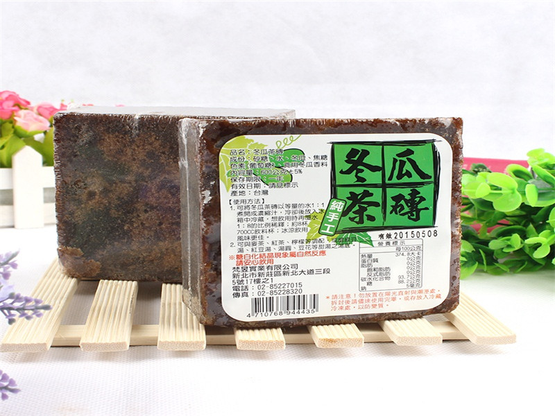 部分制法中將冬瓜塊浸石灰,浸泡石灰的過程是讓冬瓜硬化,以保存原味。整顆大冬瓜不加糖長時間熬煮,即為***無糖冬瓜茶,糖尿病和腎臟病患者可飲。因綜合式茶飲的興起,冬瓜茶業(yè)者加入粉圓、椰果、仙草、湯圓或是加上檸檬、烏龍茶等配料,冷熱飲皆有。