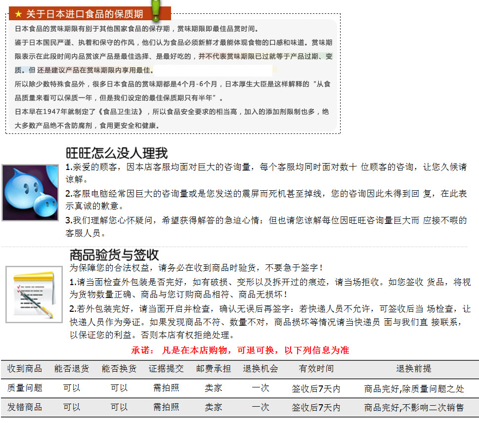 客戶須知:提貨時希望仔細驗貨,如發(fā)現(xiàn)丟件或是壓壞現(xiàn)象,要當時要求貨運公司處理賠償,如解決不了,我司會協(xié)調(diào)解決,但切記不要將貨品提回去后再與我司聯(lián)系,否則后果自付,另外所有產(chǎn)品一經(jīng)確認沒有問題簽收以后,不是質(zhì)量問題,不能以任何個人原因之類的借口退換貨!謝謝合作!