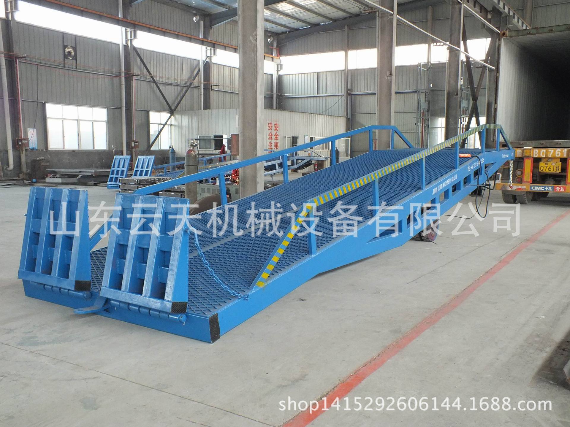 登車橋使用時,保持臺面平穩(wěn)、牢固,固定鏈***要與車固定牢,拖運時限速3公里/小時。登車橋下降過程中,嚴禁***人員攀爬,登車橋使用過程中嚴禁超載作業(yè)。所用液壓油保持清潔,不得混入水和其它雜質,一般每半年更換一次,液壓油一般冬季用N32號,夏季用N46號,當?shù)擒嚇虺霈F(xiàn)故障時,應立即停止操作,排除故障。
