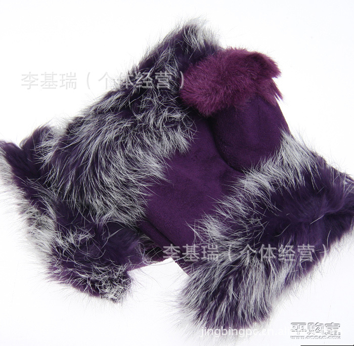 麂皮絨鑲兔毛的,里布是很保暖的絨絨,戴著它的小手手既暖和又很靈活方便,