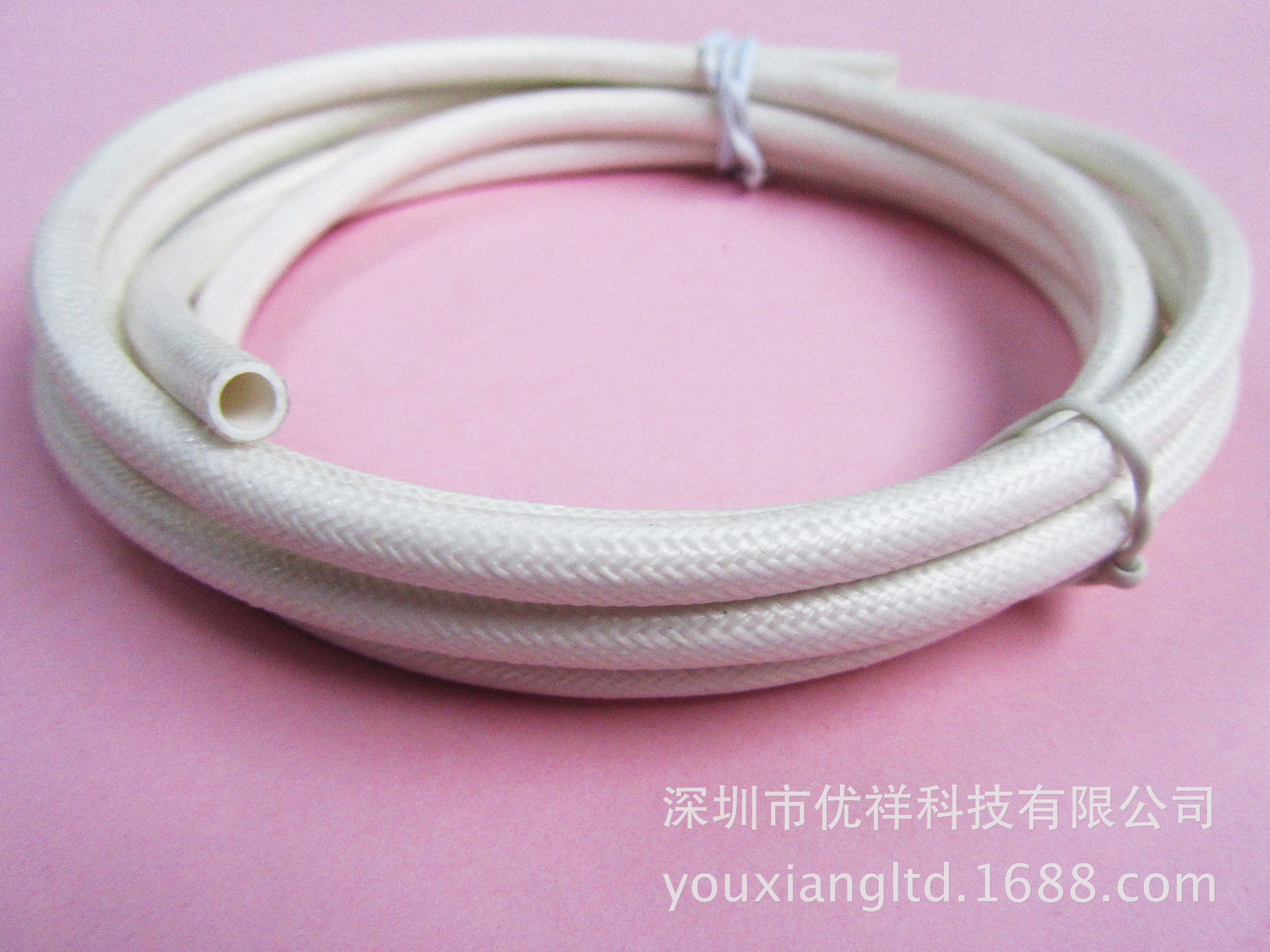 產(chǎn)品描述:玻璃纖維硅橡膠套管(亦稱內(nèi)膠外纖套管)系以硅橡膠擠出成管后,再用玻璃纖維編織,然后浸涂有機硅樹脂加熱固化而成。由于包含硅橡膠和玻璃纖維,故具有***的耐熱性和介電性,被廣泛使用于各種電器的高壓絕緣保護。