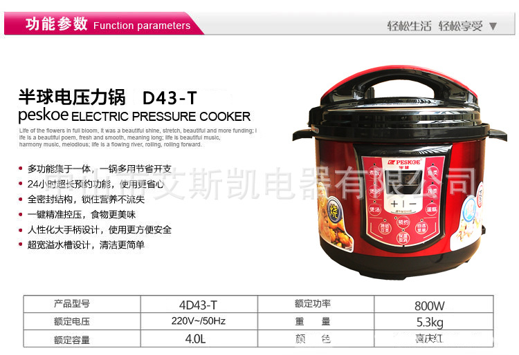 2.選購(gòu)電壓力鍋的規(guī)格應(yīng)考慮人口數(shù)量,2-3人的家庭宜選4升的,3-5人的家庭宜選5升的,6人以上的家庭宜選6升或8升的。