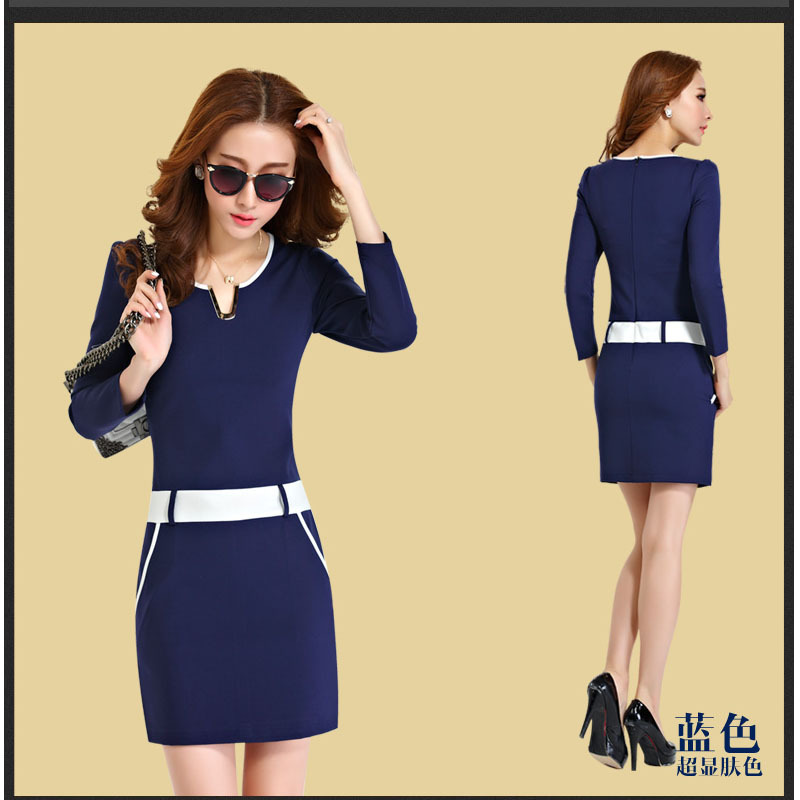 2015春裝新款韓版顯瘦氣質(zhì)女裝ol修身包臀長袖打底連衣裙廠家***