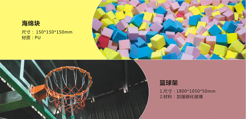 海綿塊、籃板、躲避球、攀巖、蜘蛛墻、專業(yè)蹦面、忍者空間