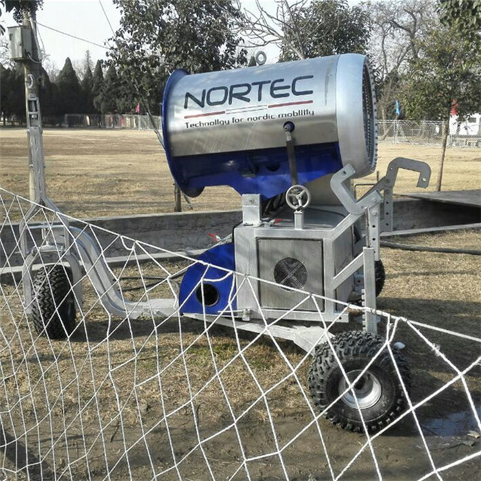 2,為了讓造雪機造出的雪噴射的更遠,覆蓋面積更大,盡量和風向保持一致。注意一定不能逆風造雪。這樣可能會導致造雪機的防護罩,風葉被冰雪堵塞。