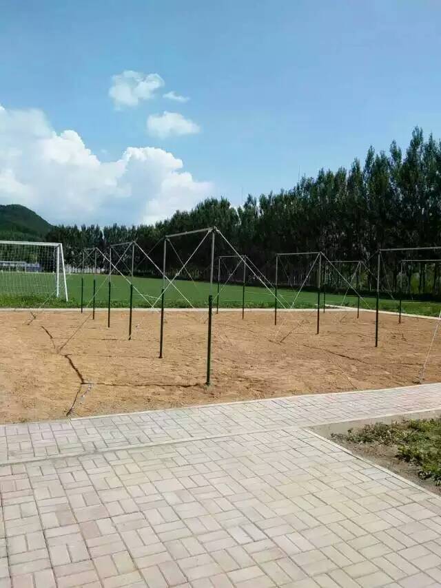 用四根繩索(直徑至多為1厘米)將單杠拉成直立,四根繩索和地面的四個地鉤相連。