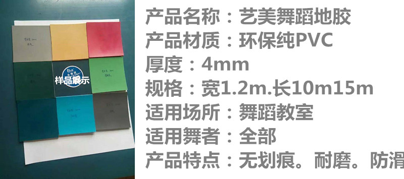 舞蹈地膠的顏色是多色的,可根據(jù)客戶提供的色卡制作。尺寸也可以根據(jù)客戶的長(zhǎng)寬尺寸定制生產(chǎn),沒(méi)有任何耗材。