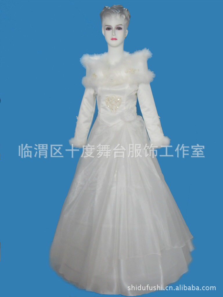 十度服飾 白色冬款長(zhǎng)袖立領(lǐng)婚紗